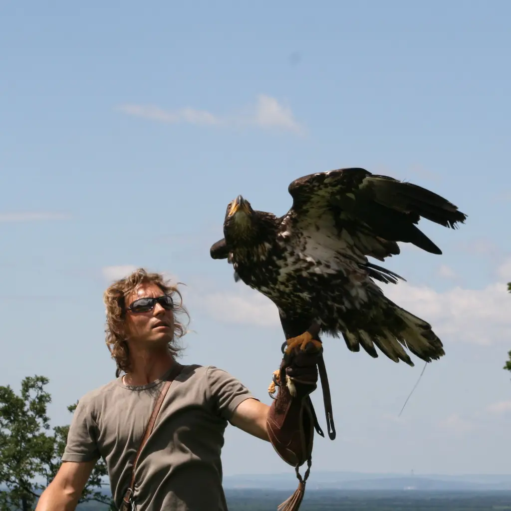 Auf der eigens errichteten Adlerwarte zeigen erfahrene Falkner das uralte Handwerk der Falknerei – in einer spektakulären Vorführung mit freifliegenden Greifvögeln.